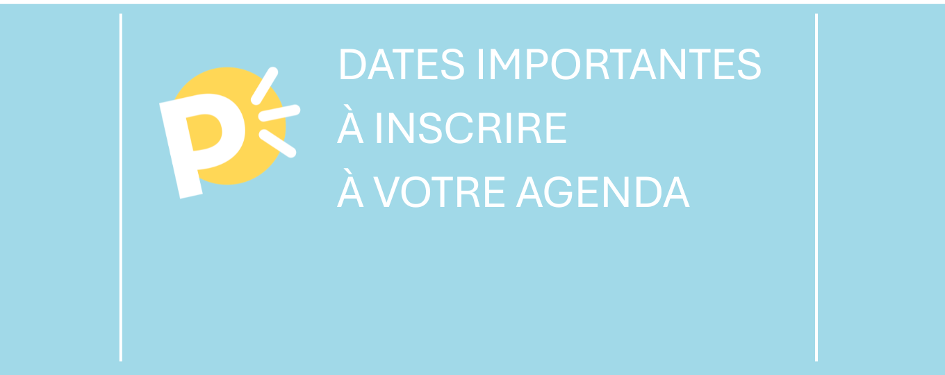 Dates importantes à inscrire à votre agenda