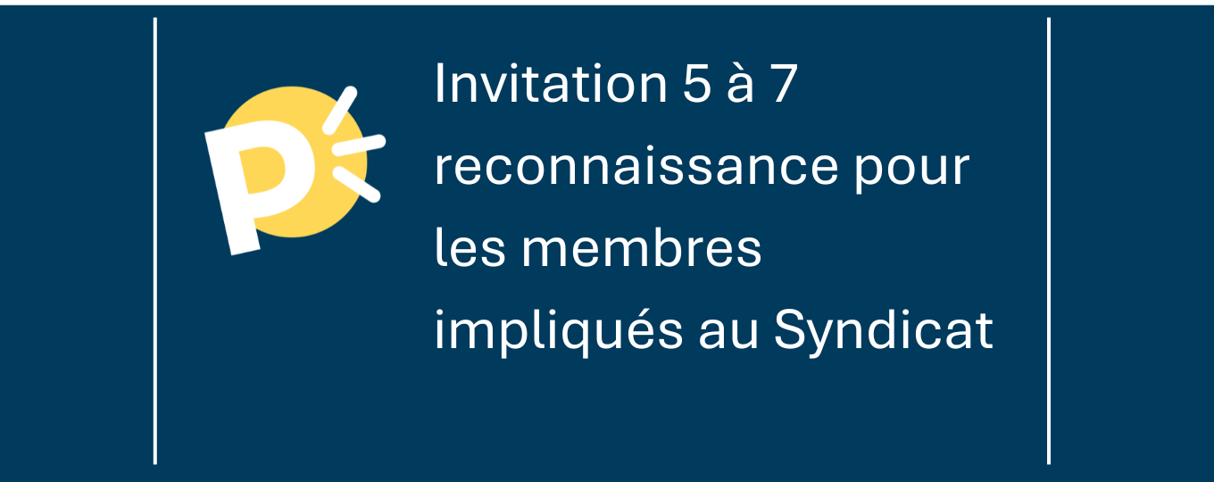 Invitation 5 à 7 reconnaissance pour les membres impliqués au Syndicat