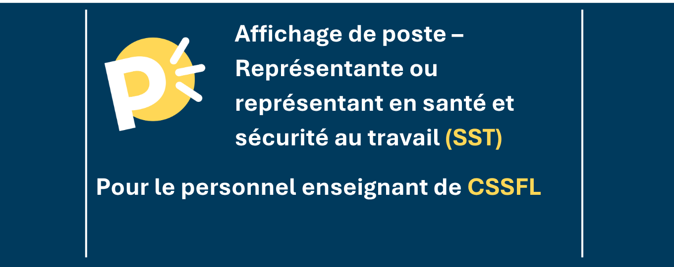 Affichage de poste – Représentante ou représentant en santé et sécurité au travail (SST) pour le personnel enseignant du CSSFL
